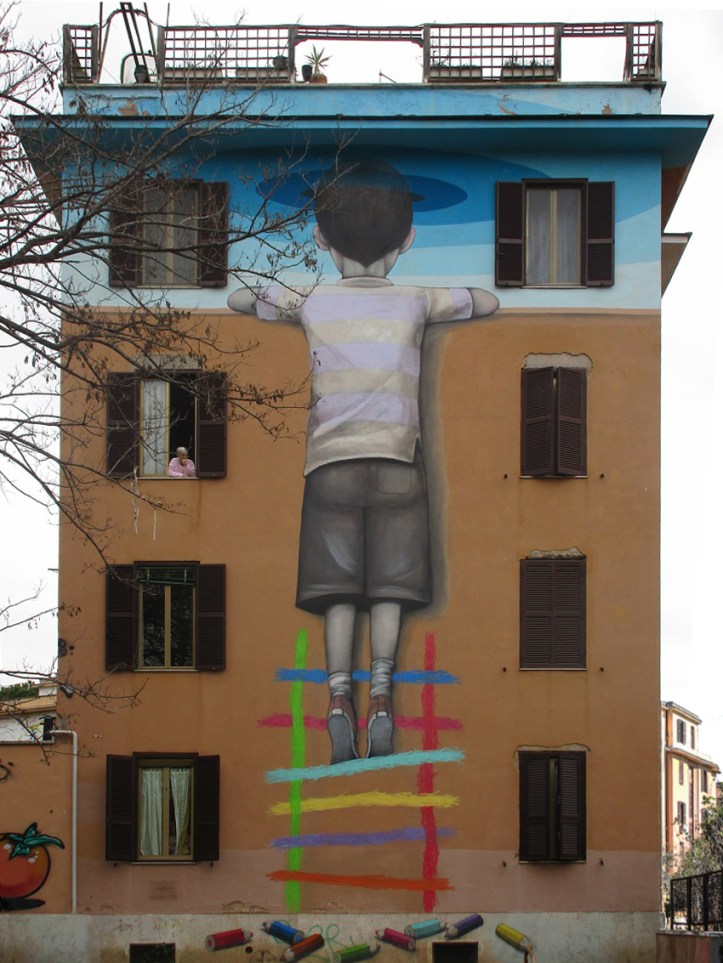 Anche Roma negli ultimi anni ha deciso di riqualificare alcuni dei suoi luoghi tramite la street art. Abituata infatti a brillare per un tipo di arte più antica e classica rispetto ad un’arte più moderna,